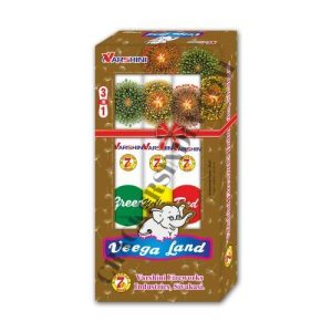 | 2 Pcs (Per Box) | “””Al”” ,””S””, “”KNO3″”,””PVC”” , “”Sr(NO3)2″” ,” | Light & Sound | It last for 30 Seconds. | To be safe and secure be at the distance of 5 metre. | This cracker can height and burst out with reach to 200 feet green tree crystals showering out. | Long agarbathi can be used to light them. |