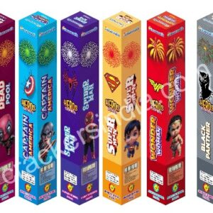 | 6 Pcs (Per Box) | “””Al”” ,””S””, “”KNO3″”,””PVC”” , “”Sr(NO3)2″” ,” | Light & Sound | 10 Seconds Each | 5 Meters | Shoot Out Vertically into the Different Colour | Use Agarbatti |